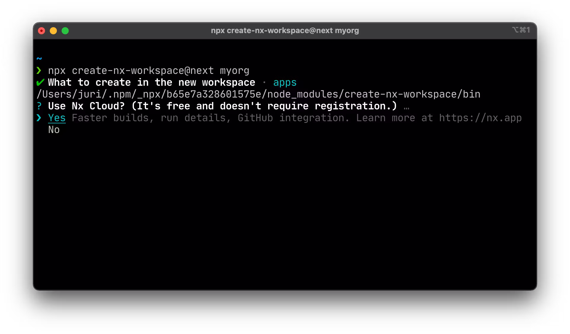 Nx Cloud opt-in when setting up a new Nx workspace